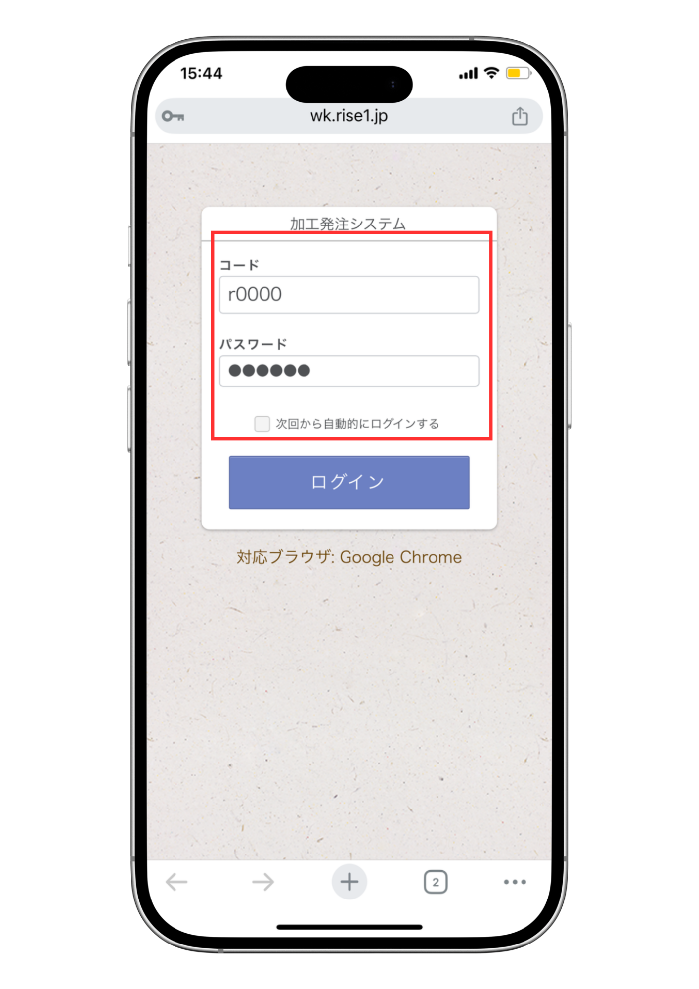 ①コードとパスワードを入力してログインします。