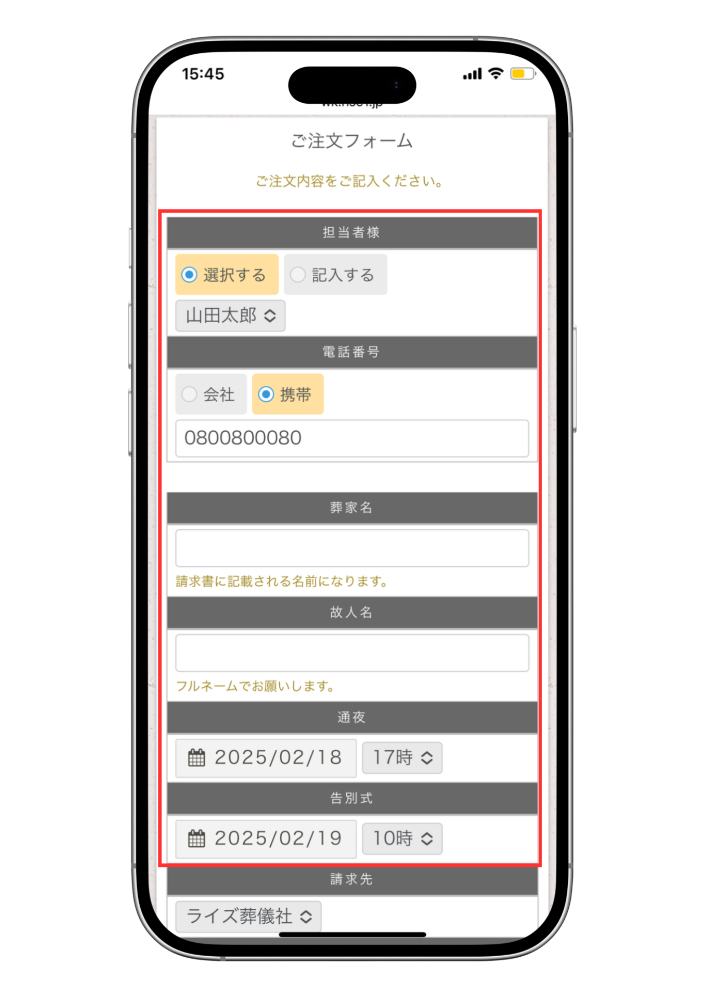 ※通夜、告別式の日時が不明の場合は未入力でも問題ありません。